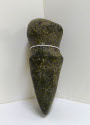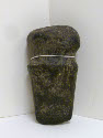 DescriptionMexican Indian celt, dark stone. Chisel shaped at one end, knob-like at other with groove for hafting.