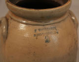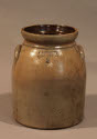 DescriptionCeramic jug, mottled tan color, darker insideOn View