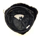DescriptionBlack velvet, black fur, pink seashells and flowers.On View