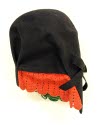 DescriptionBlack, red and green felt cloche. High crown. Label: Saks Fifth Ave.On View