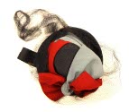 DescriptionBlack straw, brim and crown. Band for back of head as hat tips over forehead. Black veiling that fits under chin.On View