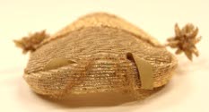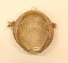 DescriptionWhite straw with metallic gold. Evening hat. Self decoration: beige face veil.On View