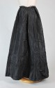 DescriptionPetticoat, black taffeta, waist has pull-tape tie. Back pleats. Hem has two layers of ruffles, tucks, shirring.On View