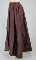 DescriptionPetticoat, brown cotton, gored front, gathered back onto narrow waistband. Two under ruffles of darker brown, stiffened dust-catching hem, braid sewn on hem.On View