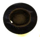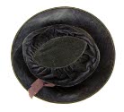 DescriptionNavy velvet, large crown. Brim, purple grosgrain ribbon band.