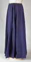 DescriptionNavy blue serge, wool. Bottom trimmed with appliqued bands and covered buttons. Four tucks down front.On View