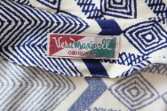 DescriptionTwo-piece blouse and jumper. A. Ultra-suede jumper of cream and royal blue panels. Deep V-neck. Top stitched side seam pockets which are stiched closed. B. Blouse of royal blue and cream geometric design. Long shirt sleeves with wide two-botton cuff. Bow neck. Made of a heavy poly-knit fabric.On View