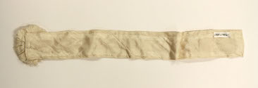 DescriptionTwo piece white silk dress. A. Bodice has front and back pleats. Long narrow sleeves with horizontal and vertical pleats. High round neck of fringed-ruched silk and lace. Hooks up front. B. Skirt is plain gored, three sets of ruffles on hem. C. Belt is pleated with rosette of fringed silk.On View