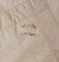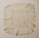 DescriptionWhite muslin center with machine-stitched 3.2 cm. hem. Edged in pointed lace 10 cm. wide. Illegible black writing in one corner.On View