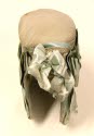 Description"Capote" bonnet of white silk faille. Blue satin ribbon trim. Lined in pale blue silk.On View