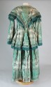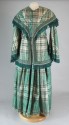 DescriptionTwo piece, a. bodice, green plaid, green fringe, pagoda sleeves. Peplum style, lined with buff cotton. b. skirt-green taffeta plaid, cartridge pleat, lined in buff cotton-let out in back.On View