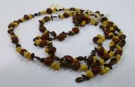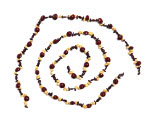Description1 rust seed, the 1 or 2 small yellow snail shells, then 3 apple seeds, then 1 or 2 small yellow snail shells, repeating many times. In two pieces.On View