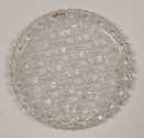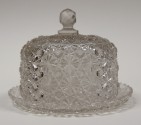 DescriptionRound base with lip. Dome with top knob. Clear Daisy & Button. Bubble in knob.