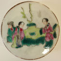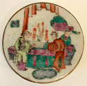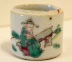 DescriptionCylindrical shape, white with scenes of figures in landscapes.On View