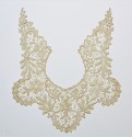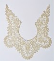 DescriptionHeavy ecru lace, with padded satin stitch. Front has deep points.On View