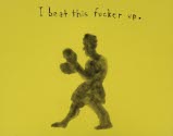 DescriptionThe shadow only, with text on top: " I beat this fucker up"On View