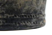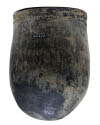 DescriptionLarge jar with round bottom with slightly convex body and straight neck. Rounded lip. Two bands of incised decoration beneath the rim. Uneven shape and rough surface. Tan clay blackened. Probably categorized as "Anasazi Utility Tradition."On View