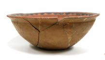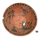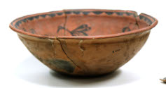 DescriptionRed pottery with four black designs of birds in various poses on interior. Scalloped design on interior rim; exterior has no designs.On View