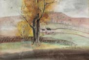 DescriptionVerso: Tree with landscape and farm house. Recto: Mountains with clouds.