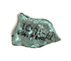 DescriptionBronze with bronze disease..1 A-1599: 2.1x1.9cm- slightly curved