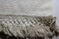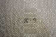 DescriptionA handwoven linen towel with fringe. Initials M.A.E. embroidered on towel.On View