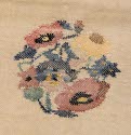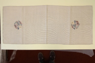 DescriptionOffwhite rectangular woven table runner with two indentical round flower designs 13cm from either end. Flowers are red, pink, black, dark & light blue, brown, and yellow. Hard to tell which side is the "right" side.On View