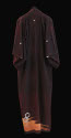 DescriptionThis kimono exemplifies the Japanese taste for restraint and asymmetry. A large portion of the subtly colored robe is punctuated only by five delicate family crests of paulownia. More conspicuous motifs- hexagonal forms strewn over the sinuous curves of a flowing stream- appear only along the bottom.On View