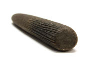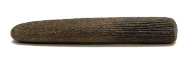 DescriptionLong, phallic-shaped stone tool with one end rounded and other end slightly flattened. Section of 13 horizontal grooves ascending from flattened edge with one vertical groove crossing them near where they stop. Tallest horizontal groove 14 cm. Grooves may be for making bark-cloth (see donor list). Stone not very smooth and is gray.On View