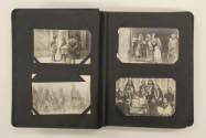 DescriptionBlack crinkly leather cover with black pages slit for postcards. Mostly black and white, sepia, some hand colored. Some photographs. "Postcards" stamped in gold on front cover. "India" applied letters on spine.189 cards and photosOn View