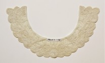 DescriptionWhite batiste embroidered in satin stitch and cut work, scalloped edge.On View
