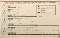 Descriptionposter showing the automobile stopping distance for different road surfaces. Graph on front, explanation on back.