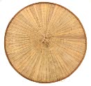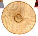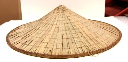 DescriptionNatural plant fiber wide brim hat with shallow conical shape and a darker fiber lower edge. Raised circular ridge at top underside, to help keep hat on wearer's head. On top side, fibers run lengthwise, on inside, they run at right angles to one another in 4 quadrants.On View