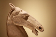 DescriptionStatue in the form of a horse, shown standing. Horse has open mouth and ears held back; docked tail trailing behind it.On View