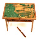 DescriptionHas two drawers, a green felt top, which is crumbling away, and its right legs have broken off.On View