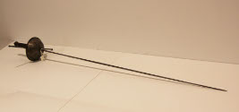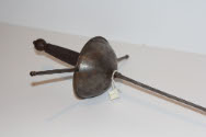 DescriptionSword, basket hilt with guard, two sides painted.Cup-hilted rapier with wide quillions fitted into grooves on unadorned cup guard with rolled base. Wire-wrapped grip with pear-shaped pommel.