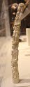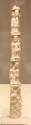 DescriptionIvory tusk carved into 4 groups of 3 European soldiers; bottom group holding rifles, one soldier with beard; 2nd with broad sword; 3rd with spears; 4th with swords; seperated by pedestals ornamented with diagonal lines; top person broken off at ankles (and missing); top band incised SOB 8 CAY; pupils of eyes, letters, beard filled with black coloringOn View