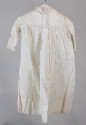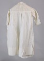 DescriptionWhite batiste, front yoke of inset lace, 2 varieties of double lace ruffle at neck. Armsye piped. Back yoke tucked. Long sleeves, lace ruffle, plain hem, 3-button closure in back.On View