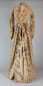 DescriptionCotton, beige/pale yellow stripe paint - gold circles and lines and black lines with circles. Button (7) front; insert waistband, cartridgepleated around waist. Hand made long sleeves cartridge pleated at shoulder and to buttoned cuff. Narrow neck band. Lined in beige/brown print. Peach wool braid on hem edge is holey.On View