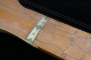 DescriptionWooden chordophone with 5 metal strings. Five tuning pegs similar to the modern viola. There are 16 places for frets, 12 of which are missing. Single gourd resonating chamber. Three ivory decorated strips with pattern of dots within circles. the gourd is fitted to the neck with a thin band of carved wood in foliage pattern. Small piece of velvet and a spade-shaped piece of ivory on the bottom.On View