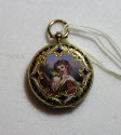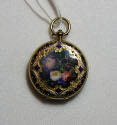 DescriptionWoman's watch. The front of the case has enamel miniature of a girl with blue flowers in hair, yellow bird on shoulder and armful of fruit. Bouquet of flowers on case back engraved Cylindre huit Rubis U. Humbert Ranuz a Geneve. Case stamped 16218 and D/C 18k. Several marks and numbers scratched inside back of case. The watch and key are in purple and green leather case w/ purple satin and velvet lining. Top of case marked P. Girod 115 Grandy.On View