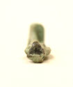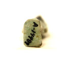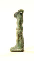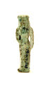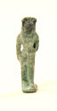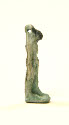 DescriptionPalegreen faience. War goddess Sekmet. Lioness-headed, erect, one arm at side, other bent at elbow and lying at waist. Perforated horizontally through headdress.