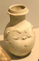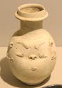 DescriptionUnglazed buff clay jar with raised rim, and the face of the god Bes on the shoulder and body of the jar