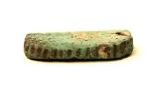 DescriptionLight blue-green, or turquoise glaze, scalloped edge, a writing tablet.On View
