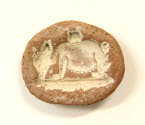 DescriptionClay mold for producing pig amulet in faience. In sunk relief there is a long snouted pig with curly tail.On View