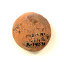 DescriptionClay mold for producing amulets in faience. Possibly a breast amulet in the form of a hemisphere with inverted nipple in center.On View