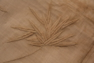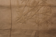 DescriptionWhite grass linen luncheon cloth embroidered in white all-over design of palm trees. It has a wide hemstiched border.On View