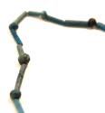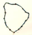 DescriptionTubular faience beads (25) of varying lengths. The smallest seem to be fragments of 1 inch long beads, such as the unbroken ones. Strung alternately with round beads (17) one of which is fluted. Three are gray black and seem to be stone. Modern string.On View