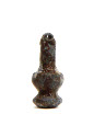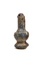 DescriptionDark-corroded faience. Shaped like a vase on a stand with a long neck- pierced through top, hole in bottom.On View
