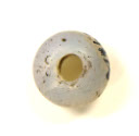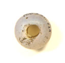 .2: bluish clear glass, flattened round- large opening. 1.2 x 1.5 cm