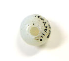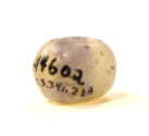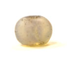 DescriptionTwo glass beads..1: whitish clear gloss, assymetrical round- large opening, 1.5 x 1.9 cm